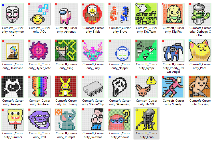 30 unique ".cur" files to customize the Windows mouse cursor